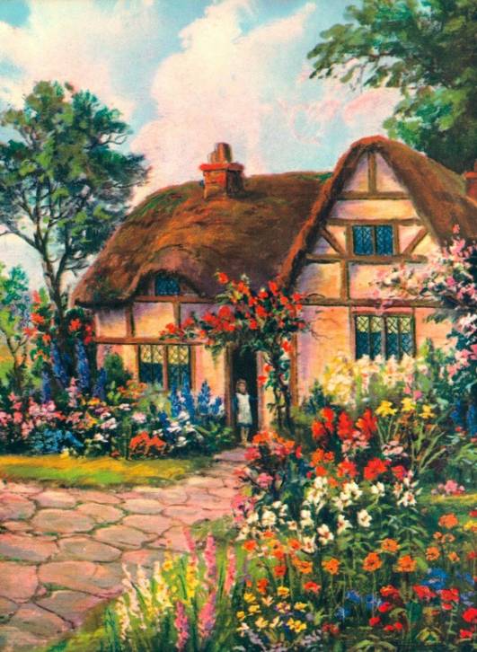 Back in the late 1940's, my grandmother's dear friend drew and then embroidered a thatched roof cottage similar to this one. She left it to me, and it's my prize possession.