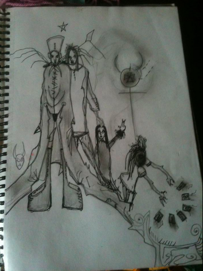 I used to be a bit of a goth in my younger years, and used to draw all sorts of creepy scenes in my school books.