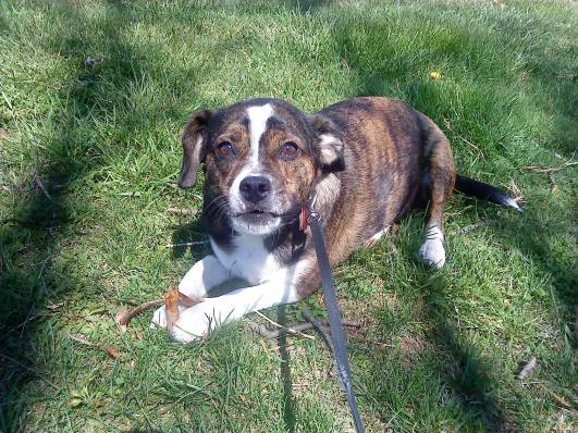 My dogs snuggling with me.