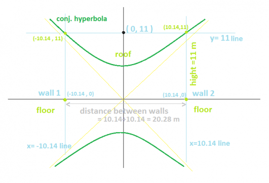 you just need to get the x coordinates where the line y= 11 ( hight )