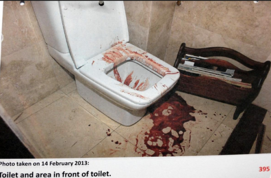 The crime scene photos of where Reeva Steenkamp was shot can be seen online, as they have been leaked during the course of the trial of the man accused of murdering her: Boyfriend Oscar Pistorius.