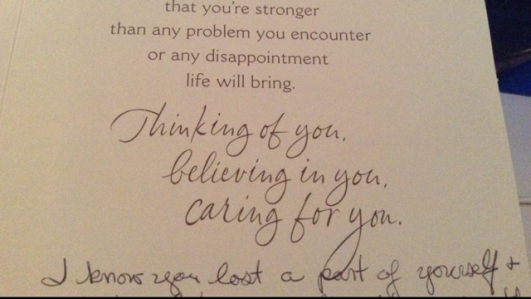 The writing on the card itself says the following: