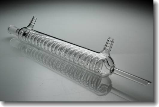 There are a few types of condenser, but the most common can be found as a scientific device, which changes the states of gases to liquids. This works by a process of cooling a gas in a heat exchange unit, that essentially creates condensation.