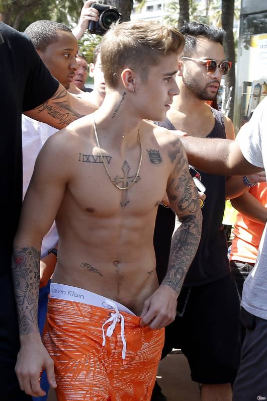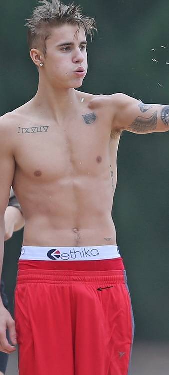 No, Justin Bieber does not SHAVE his pubic hair or happy trail, nor his armpits. But he does shave his beard and mustache (due to puberty development).