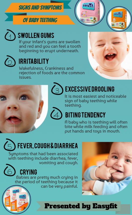 Here are some signs and symptoms of baby teething. Presented by easyfit.in. Use easyfit premium quality baby diapers and baby pullups online for you baby to protect them from nappy rashes or any infections.