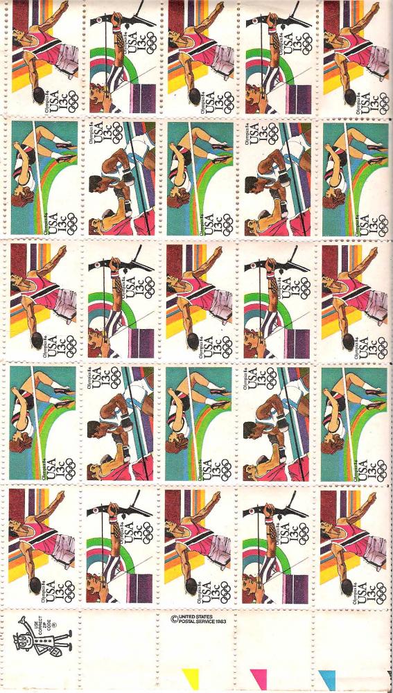 answered 3/24/2009 How Much Does A Page (25) Of 13 Cent 1984 Olympics Stamps Go For? Below is a preview of some of the stamps.