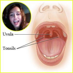 jess obell answered 7/11/2010 Where Is Uvula? He's in someones throat oh there he is, in mileys mouth