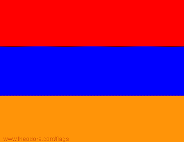 The flag of Armenia is consisted of three equal horizontal stripes, the red stripe is at the top, the blue one in the middle, the orange at the bottom. It was first adopted on 24 August 1990.